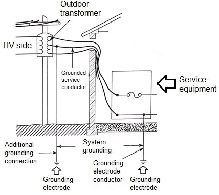 These connect back to the service neutral with a Grounding Electrode Conductor (GEC), completing the path.
