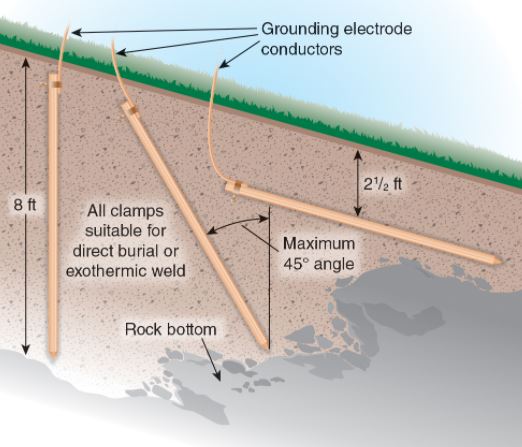 • Crucial Note: A water pipe electrode always requires a supplemental electrode (like a ground rod) because the utility might swap the pipe for plastic (PVC) in the future.